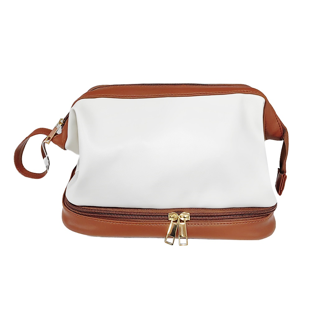 A makeup bag is typically smaller and optimized for cosmetics/tools (brush slots, compact spaces). A toiletry bag is often larger and built for bottles and wet environments (waterproof lining, hooks, wet pockets). Many travelers prefer a hybrid: makeup on one side, skincare/toiletries on the other.